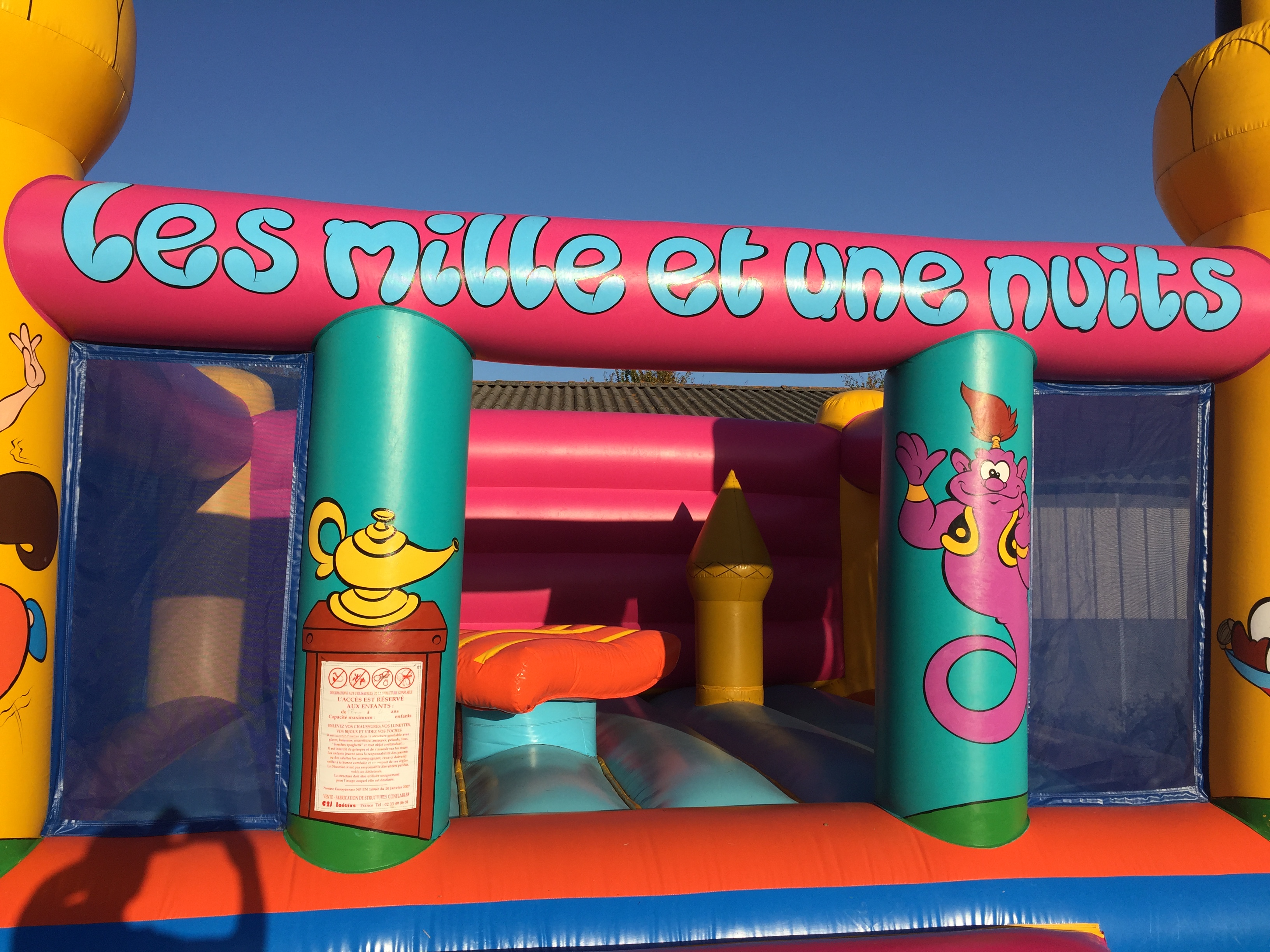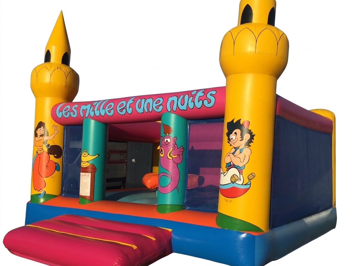 Découvrez notre château gonflable “Mille et une nuits”, une structure colorée inspirée de l’univers oriental qui fera rêver les enfants lors d’anniversaires et d’événements festifs. Avec ses dimensions de 5 m x 5 m, il offre un bel espace pour sauter et s’amuser en toute liberté.
